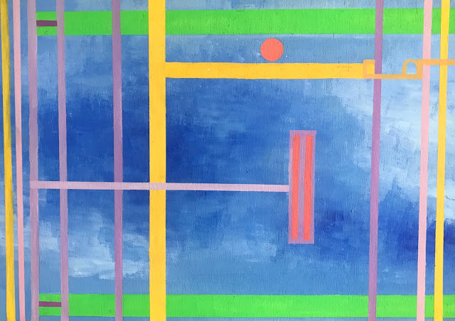 そうしてできるのが人工物の形を生かしつつも、オリジナリティのある色面構成です。下の作品は階段やドアを用いた作品で、構成美と配色、モチーフの向きを変える工夫をしただけです。